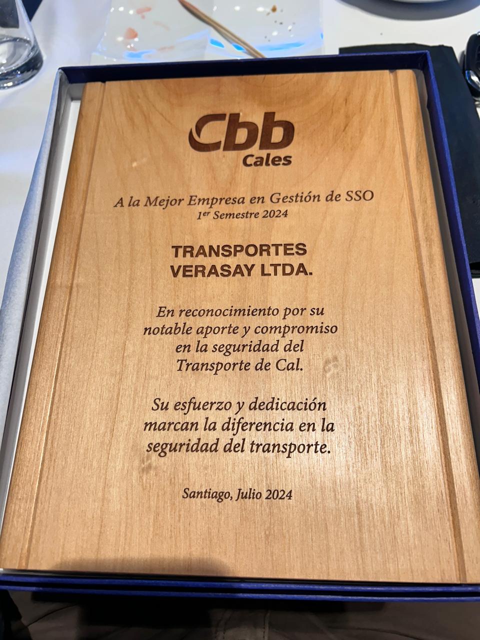 En Transportes Verasay, estamos encantados de compartir una noticia que refleja el arduo trabajo, la dedicación y el compromiso de todo nuestro equipo. Nos enorgullece anunciar que hemos sido reconocidos como la "Mejor Empresa de Transportes del 1er Semestre 2024" por nuestro distinguido cliente, Cbb Cales.